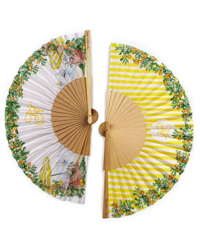 Personalize the fans available in our online store by engraving the text of your choice on the wooden rib.